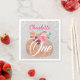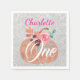 Cute fall höstens första födelsedag-napkin med stor Peach orange blommigt-pumpa och silver glitter-gnistor med bakgrund. Ord "One" finns i ett stort elegant vitt skript och ditt eget namn finns i ett söt shock rosa-skript. Du kan enkelt lägga till valfri namn och ändra färg och teckensnitt med hjälp av anpassningsalternativet!