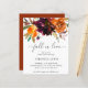 Rustic budget inbjudningskort för möhippan med rubriken "Fall in Kärlek" tillsammans med en blommigt av en vattenfärg med en varm och jordisk nyans av bränd orange, terracotta och djup burgundi tillsammans med en viss grönsak. En elegant med rikens skuggor från höstens perfekt för en fallande möhippa. Dessa billigtar inbjudningskort för möhippa trycks på lakan av papper för ett budgetvänligt alternativ.