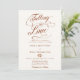 En romantisk, elegant boho, enkel, klassig och modern bröllopsinbjudan för de kommande månaderna - september, oktober, november. Den har en modern kalligrafi med elegant-skript med gott om blomning och titeln "falla i kärlek" och en enkel gren av höst löv, kopparförlossning. Luxuriös men enkel, klassisk men chic, modern men tidlös. Ett härligt val för hösten eller hösten bröllop med koppar, bränd orange, terracotta, beige, rött, orange och andra fallhuvar.