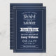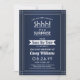 Kan du behålla en hemlighet? Familjen och vännerna i inbjudan till en elegant och en spännande överraskning av födelsedagsfirandet med anpassningsbar marin blå och vit räddar datuminbjudningarna till festen. Alla formuleringar i den här mallen är enkla att anpassa, inklusive meddelandet "Shhh!! "Det är en SURPRISE." Utformningen har en modern stripe gräns på en marin blå bakgrund, klassisk vintage-depografi och snyggt-manusatrografi. Kortet kan anpassas för vilket år som helst eller för vilken typ av händelse som helst och passar antingen en man eller en kvinna. Cheers och Grattis på födelsedagen!