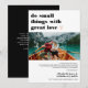 Om omständigheterna kräver att du minskar din bröllopsfest kan du informera din ursprungliga utökade gästlista med detta moderna och minimala, mindre, nedskalade mikrobrölloppskort. "Gör små saker med stor kärlek" är skrivet med ett trendigt retro-teckensnitt och kan ändras till valfri färg. På baksidan kan du anpassa ditt meddelande om bröllopsnedskalning i detalj och lägga till information om livesändning av ceremonin och bröllopswebbplats. Bakgrundsfärgen kan också anpassas. Dessa professionellt utformade kort kan snabbt anpassas.