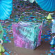 Flerskiktat kor-skrafferat pub i fetstilt färg.
