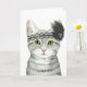 Den här vattenfärgsutskriften har en tabby katt med snöre och fjädrar| Efter Grace Popp