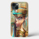 Abstrakt digital porträtt av den egyptiska gudinnan, drottning Nefertiti, i golder och gröntar. Wombo Dream AI och konstnärssamarbete.