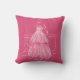 En skiss av en kvinna i en vacker gryning i vitt mot en borstad rosa bakgrund.