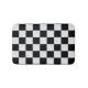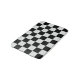 This is art deco inspired bath mat has a faux white marble and black checkerboard pattern.