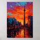 Neo Expressionist Toronto Skyline Vibrant Sunset Poster