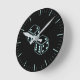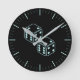 Utformningen av roligtens väggklocka har en svart bakgrund med neon aqua klocka ansikte och ett par tärningar i mitten. Perfekt för älskare av alla sorters spel!