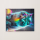 Neon Big Cat med regnbåge Färg, färglös katt Pussel