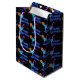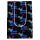 Neon Blue Grattis på födelsedagen och cocsvans på mörk grått brick mönster.