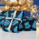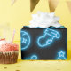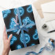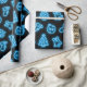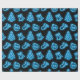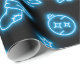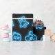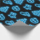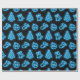 En sömlös mönster i Neon Blue-Jul-inslag, inklusive Julgranar, Klockor, lager och prydnadsföremål mot svart bakgrund