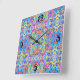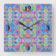 Neon Blue, Lime, Lila & Orange Swirl Mönster Fyrkantig Klocka