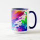 Roligt mugg med en nyfärgad stänk-effekt på nyfärgade nyanser i nyans av blått, lila, rött, gult, grönt, rosa, orange och turkos.