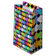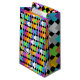 Den här presentsäcken har en geometrisk design av nydiamanter som överlappar varandra på en svart fält.
