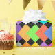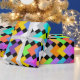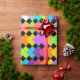Denna papper har en geometrisk utformning av nydiamanter som överlappar varandra på en fält av svart.
