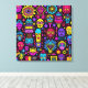 Neon Doodle Ansikte - Vibrant Street Art Mönster Canvastryck