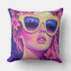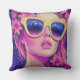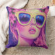 Neon Dream Girl med Blommigt Sunglasses Kudde