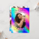 Den här söta och feminina födelsedagsfest-inbjudan i form av en fotokollage för sweet sixteen är perfekt för den trendiga och stiliga tjejen. Den har en falskt tryckt neonregnbåge enhörning holografisk iriserande (neonrosa, neonblå, neongrön, neonlila, neongul, vit och turkos) penseldrag-halo ovanpå ett stort huvudfoto och elegant handskriven kursiv typsnitt. På baksidan finns fyra ytterligare anpassningsbara bilder och festdetaljer med ett monogram med fullständigt namn för en extra speciell touch. Det är en söt, cool, modern och snygg design.