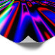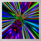 Detaljer från ljusa digitala teckningar skapat från en fyrkantig bild som återskapas till en explosion av regn från färg som påminner om neon ljus mot en svart bakgrund.