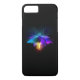 Antikeknisk, mekanisk eldfast med glödlampa och tunn vingar-glöd orange, lila, turkos på svart bakgrund. Steampunk stil.