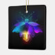 Antikeknisk, mekanisk eldfast med glödlampa och tunn vingar-glöd orange, lila, turkos på svart bakgrund. Steampunk stil.
