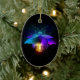 Antikeknisk, mekanisk eldfast med glödlampa och tunn vingar-glöd orange, lila, turkos på svart bakgrund. Steampunk stil.