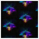 Antikeknisk, mekanisk eldfast med glödlampa och tunn vingar-glöd orange, lila, turkos på svart bakgrund. Steampunk stil.