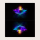 Antikeknisk, mekanisk eldfast med glödlampa och tunn vingar-glöd orange, lila, turkos på svart bakgrund. Steampunk stil.