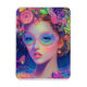 En häpnadsväckande, surrealistisk fantasi porträtt av en strålande kvinna som adorberats med glasögon för dykpastellglas och ett krona av nyblommor och frukt. Den här digitala blommigten är full av färg, magi och feminin energi.