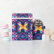 En pulserande och dynamisk abstrakt med en matris av vassa geometriska former och konvergerande linjer. Bilden kännetecknas av en elektrisk palett i färg som domineras av nyare rosa, ljusblått, gult och orange, och skapar en futuristiska och kraftfull visuell upplevelse. Symmetriska arrangemanga och strålande ljuseffekter framkallar en känsla av djup och rörelse, som påminner om VJ-bilder eller digital konst.