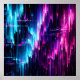 Dive into electrifying digital chaos with this intense cyberpunk glitch masterpiece. Towering vertical streams of glowing neon cyan, electric blue, vivid magenta, hot pink, and deep purple cascade like corrupted code or futuristic city lights at night. Sharp pixelated distortions, fragmented lines, and overlapping rectangular glitches create a high-energy, futuristic vibe — evoking motion, technology overload, and vibrant cyber aesthetic.