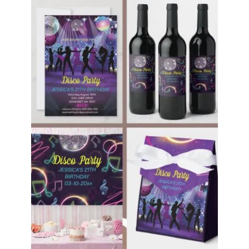 Neon Glow Disco Dance Födelsedagsfest, Disco Födelsedagsfest 70:s inbjudan till Disco Boll-partiet. Rosa och Lila 21:a födelsedagspartiets inbjudan är perfekt för en modern Födelsedagsfest. Anpassade matchande produkter kan på begäran skapas av Designer.