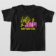 Flickskjorta för Låt oss Jump Födelsedagsfest med levande, nymånsglödgat ljus och text i rosa och gult, underbar för en trampolinpark, studshus eller dansande födelsedagsfester för flickor.