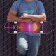 Estetiska 80-talsvibbar möter modern skateboardåkning. Denna neon grid solnedgång och horisontdesign ger en touch av cool vaporwave till din åktur eller ditt hem. Perfekt för människor som älskar det retro-futuristiska utseendet. Så oavsett om du vill åka på gatorna eller bara vill ha en fin väggdekor, är denna retrowave skateboard med slående lila, orange och rosa färger perfekt för dig.