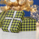 Tillfällen som är pappert i en originalljusstark gult i Plaidwerx, svart och vit gatuvägg i stil som är täckt av plaid mönster.