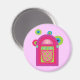 Den här illustrationen av vektorkonsten för retrojukebox har en jukebox i ljust och snyggt nyare färg som shock rosa, kalkgrön, elblå och lila med färgstarka vinylskivor i bakgrunden! Den här vintagen inspirerade designen är den perfekt gåva som kan köpas för alla som kärlek kitsch och kitschy-teckningar, 50:an och musiken! Länge leve rock musik!