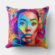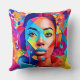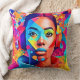 En livfull digital porträtt av en kvinna med hörlurar, med djärva färger och geometriska former. En fängslande blandning av konst och teknik (Denna design gjord med AI). Beställ idag och njut av glädjen att handla!