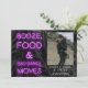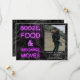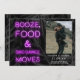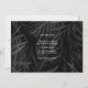 En coola och avslappnad sparar datumet, med nybörjarskylten stil, sprit, mat och dålig dans på svart löv i handflatan lilor den tropiska bakgrunden. Lägg till ett av dina favoritfoton.