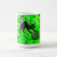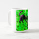 Vibrant neon illustration of a mischievous black cat playing with a ball of yarn on a bright lime green background, drawn in bold doodle graffiti lines with arrows, swirls and quirky symbols that create an energetic street-art look and a fun modern feline vibe that instantly grabs attention.