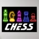Det här fantastiska temat poster i Chess innehåller en rad av Chess delarare för att, från lämnat till höger, inkludera Kung, riddare, biskop, rook och en pjäs. Under det nyljusa delarare är ord schack i ett typsnitt av futuristiskan.