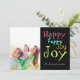 Neon Grönt Rosa Turcos Blue på Black Lycklig Joy Modern Simple Typography jul Photo Card med Lycklig Jolly-Helgdagar på baksidan. Eller ändra till ett Helgdag-meddelande för Anpassningsbar. Gör detta till ett unikt julkort för din speciella lilla familj!
