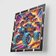 Neon Monster Lastbilar på en flamingaktionerad färgstark bakgrund Dynamisk illustration av nybelyst monster lastbilar med vibrerande hjul och flamma, omgiven av fet färg och rörelse. Fungerar i en spännande atmosfär som är perfekt för fordons-, tävlas- och underhållningsteman.