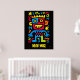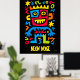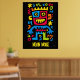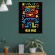 Det nyfödda monstret poster i pulserande rött, gult, blått och grönt. En roligt popkonsdesign från Neon Noise Collection, perfekt för Halloween fest, barnrum eller modern färgstark dekoration.
