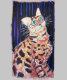 Step into the vibrant world of our latest hand-drawn cat illustration, where the mystery of the night meets the bold beauty of a spotted leopard cat. This unique feline artwork captures a moment of curiosity, featuring a stylized Bengal cat with striking teal eyes that pop against a deep blue textured background.