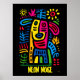 Lyft upp muren med nybörjarpersonlighet. Den här hund av abstrakt kombinerar geometriska nyformer och staminspirerade motiv i levande färg - rosa, gult, grönt och blått - över rikens svarta bakgrund. Omgivande sol och blommor tillför ett livligt kant. En perfekt biet för studior, musikrum eller djärvt modernt insida.