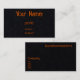 Detta snygga visitkort har neon orange bokstäver tryckta på ett lyxigt slätt, jet svart papper. Det är en iögonfallande design som säkert gör ett bestående intryck.Denna design gör ett djärvt uttalande, även med sin minimalistiska strategi.Sålda i förpackningar om 50.