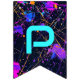 Neon Paint Splatter Grattis på födelsedagen Vimplar