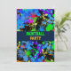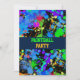 Neon stänk, Paintball Födelsedagsfest. Ljusa färger av grönt, blått, orange, lila och rosa med faux glöd i mörken. Anpassa för alla åldersdagar.