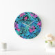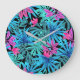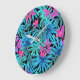 Neon Pink and Blue Tropical Plant Pattern Stor Klocka