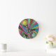Neon Pop Art Deco: Electric Geometric Radio Waves Rund Klocka